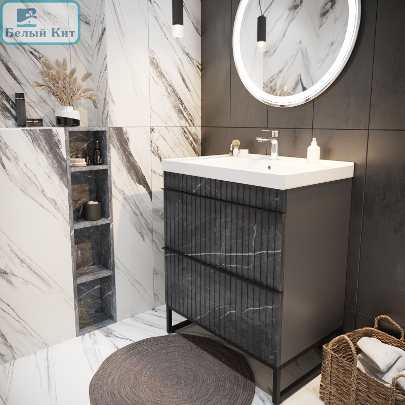 Тумба Mixline "ОКЛЕНД-60" графит мрамор под умывальник Грейс-60