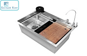 МОЙКА НАСТОЛ.МОНТАЖ Franco SET-4 75х46х22 см САТИН многофункциональная (сифон, доска, гастроемкость, мойка стакана, дозатор, кран для фильтра)