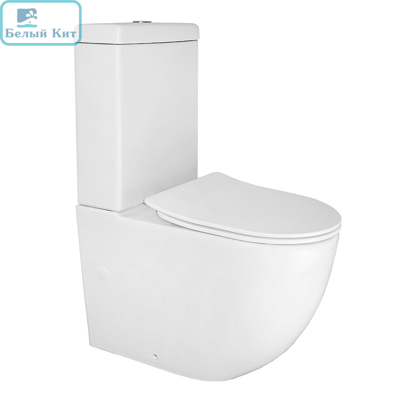 Унитаз-компакт напольный Azario Renda 615х365х840 безободковый в комплекте с арматурой, сиденье микролифт, белый (AZ-8693)
